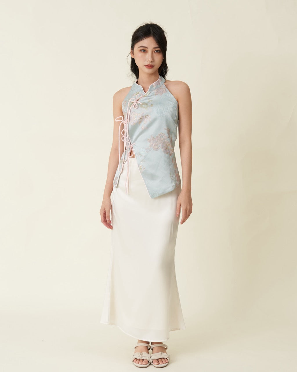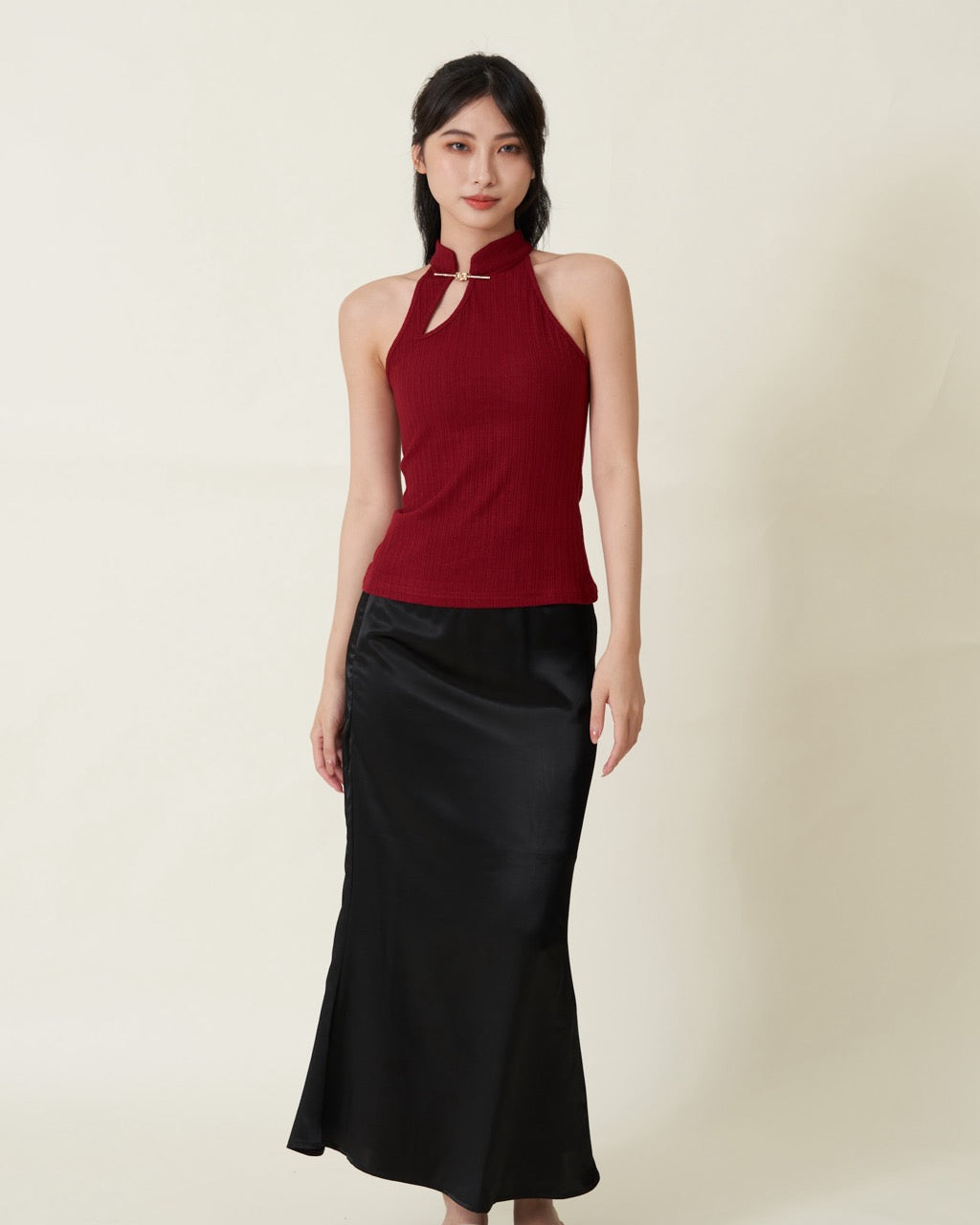 A soft elegant skirt comes in subtle satin shine that gives it a luxurious, refined look.