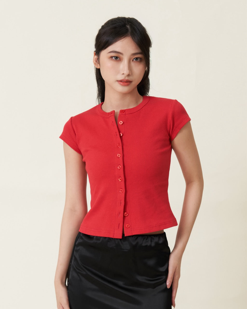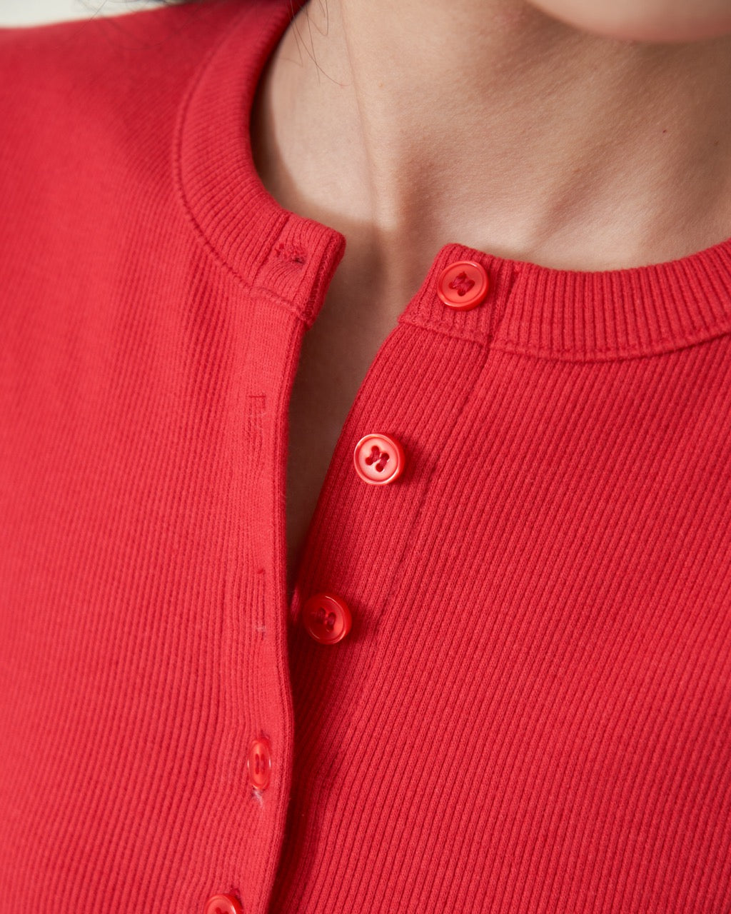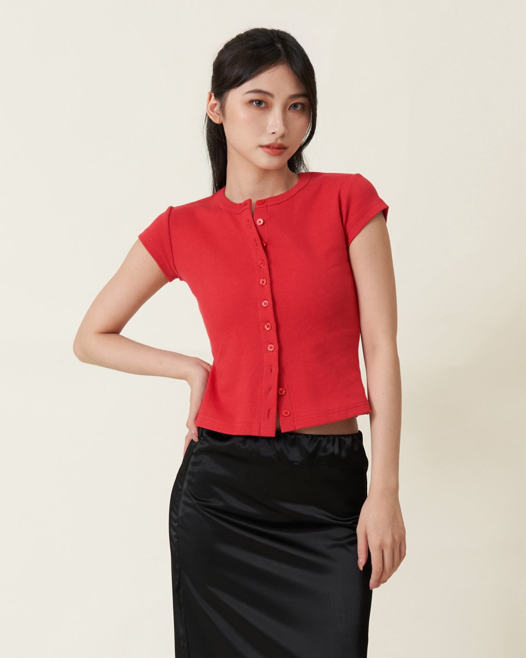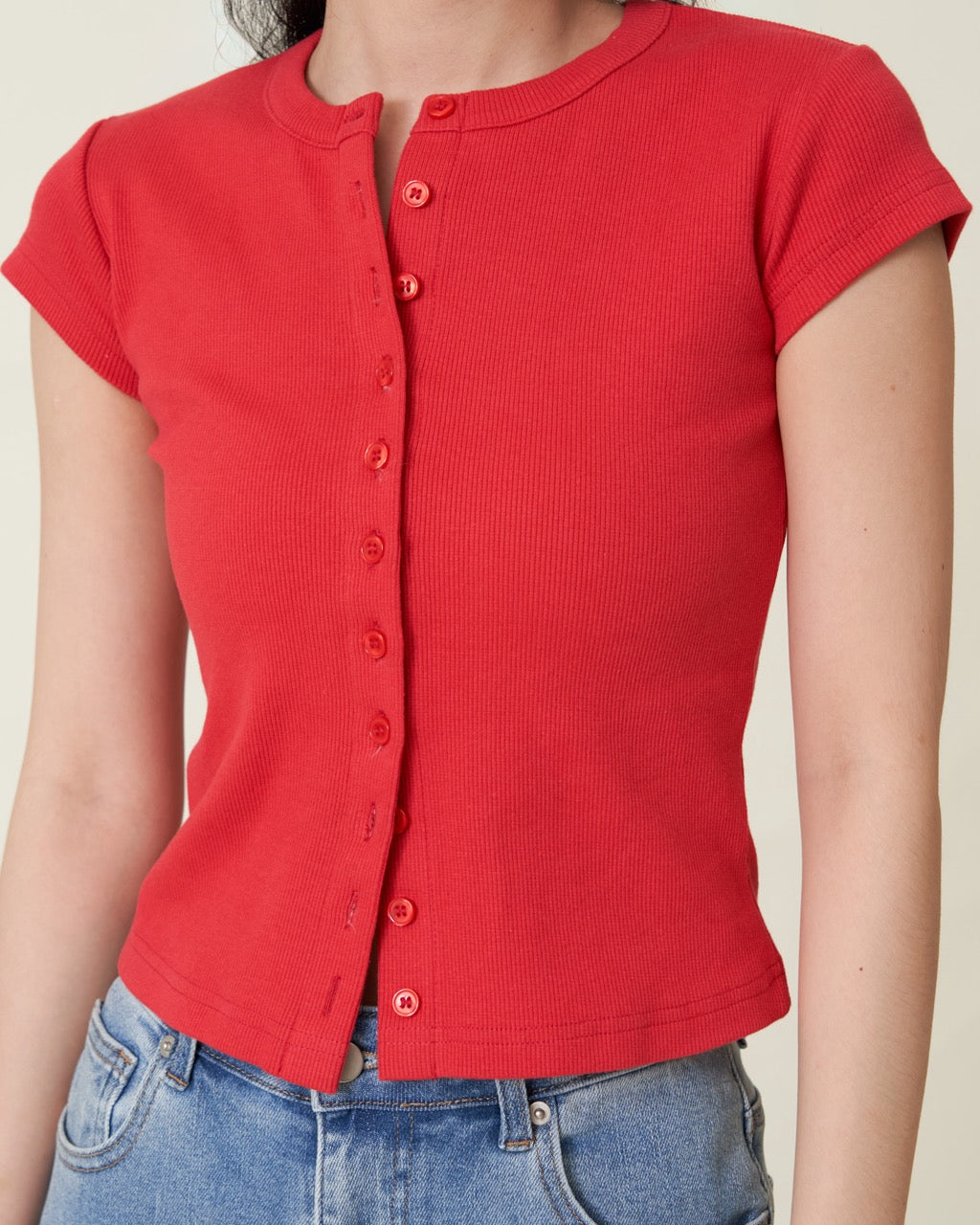 Crafted from textured cotton fabric, the Lyon Button Top is designed to flatter and elongate. Featuring 11 buttons down the front, it visually lengthens the body for a sleek silhouette.
