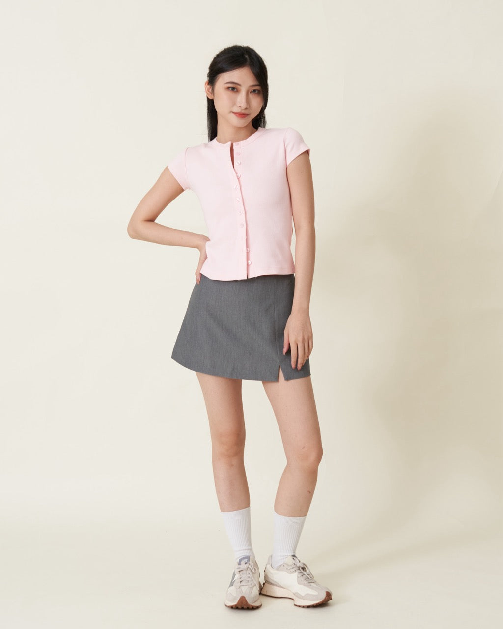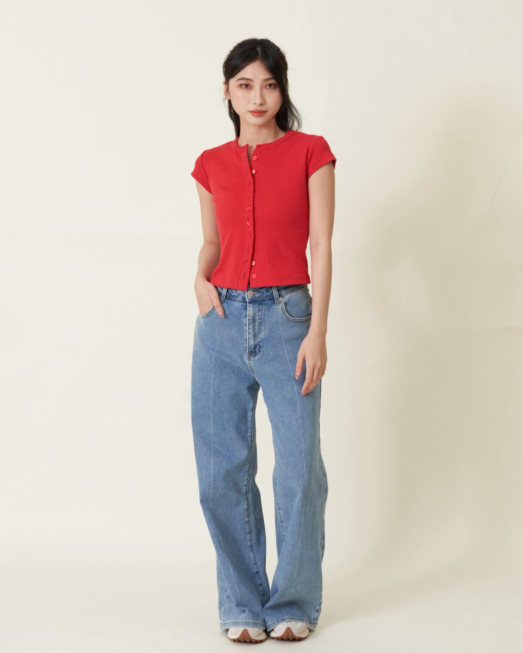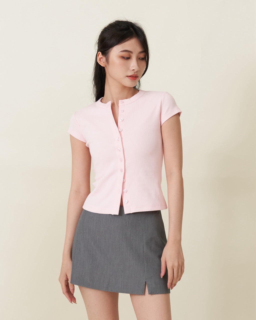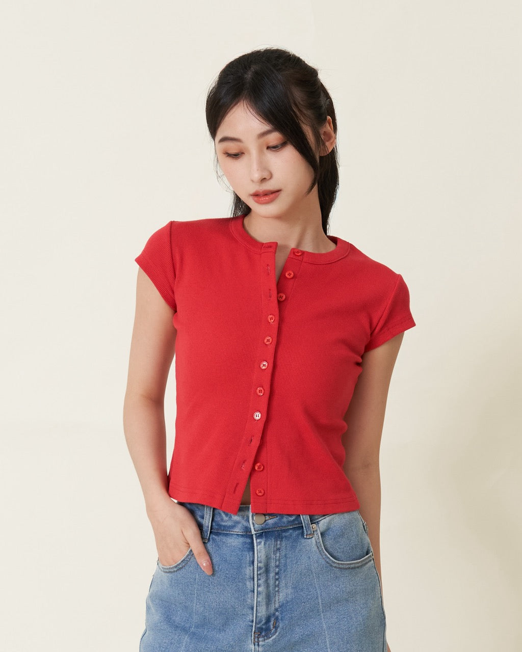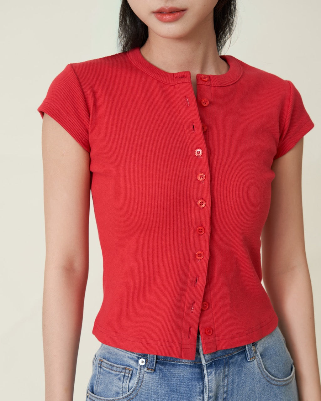Crafted from textured cotton fabric, the Lyon Button Top is designed to flatter and elongate. Featuring 11 buttons down the front, it visually lengthens the body for a sleek silhouette.