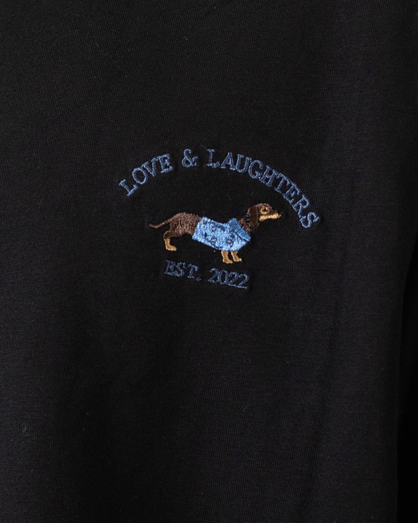 Inspired by the pets who fill our days with love and laughter, this tee features a refined dachshund embroidery — subtle, charming, and full of character.